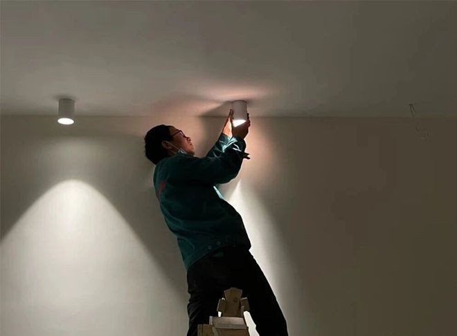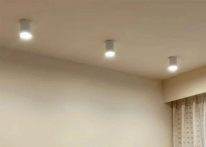 明装筒灯这事儿,真的是外行看热闹内行看门道,或许你在网上看到的明装筒灯齐齐的一排看似安装很简单,但实际上,想要多个射灯在同一个水平线上,要非常精确的测量,稍微有一个电位略微歪了一些,看起来就很难看。